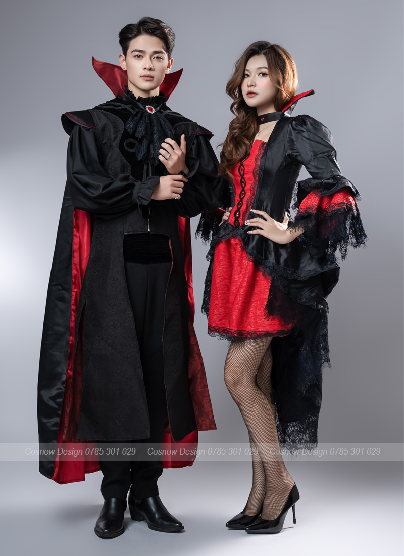 Trang phục cặp đôi Ma Cà Rồng – Dracula : Hóa thân thành cặp đôi quyền lực bậc nhất bữa tiệc halloween với trang phục cặp đôi Ma Cà Rồng – Dracula. Sự kết hợp giữa 2 phiên bản nam và nữ sẽ tạo nên diện mạo đầy bí ẩn, quyền lực và quyến rũ. Khiến bạn và người ấy trở thành tâm điểm của mọi bữa tiệc hóa trang, sân khấu trình diễn hay concept chụp ảnh cá tính.